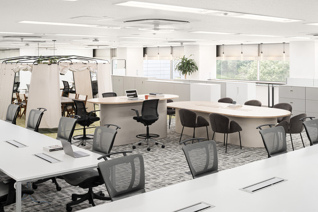 社員一人ひとりの働き方や用途に応じた自由な選択を可能にするレイアウト設計により、快適なオフィス空間と生産性向上を両立しています。