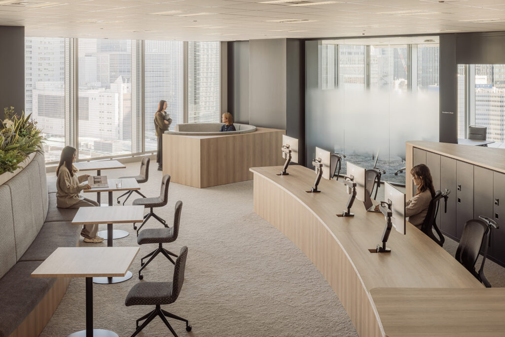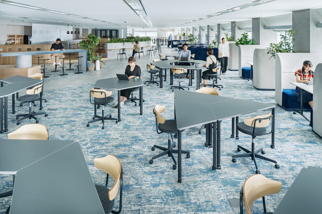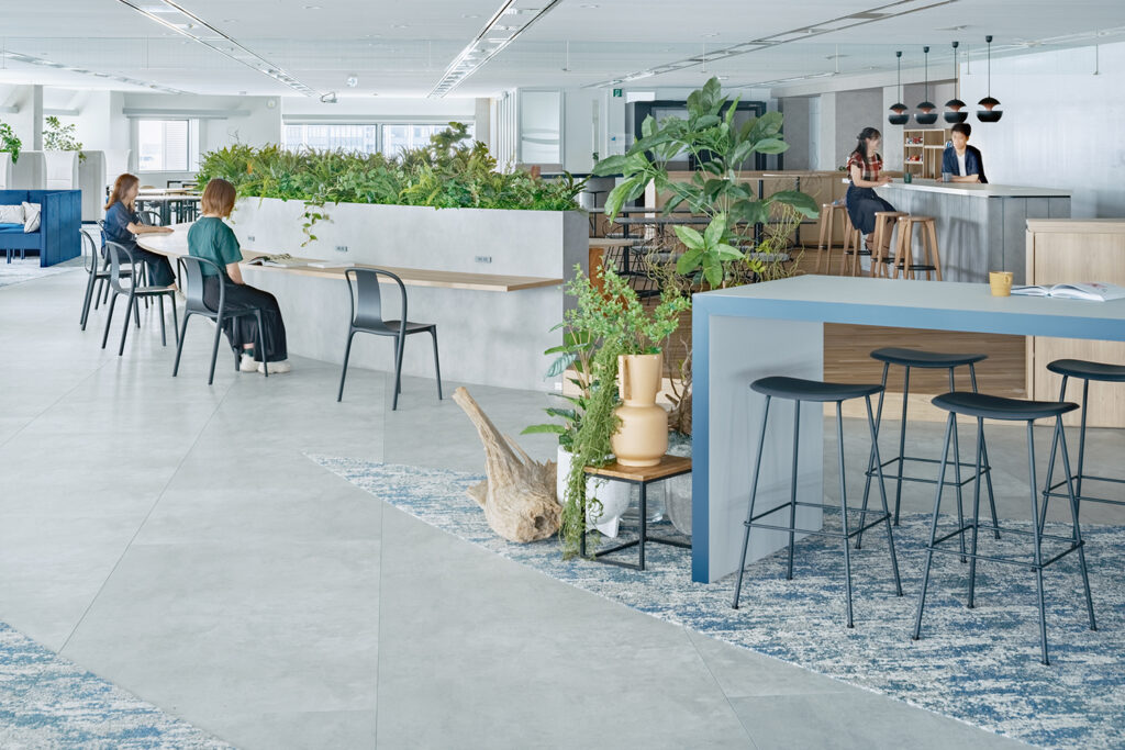 固定席とは別にカフェラウンジを設けることで、業務内容や気分に合わせて、最適な座席を選択できるようになっています。
