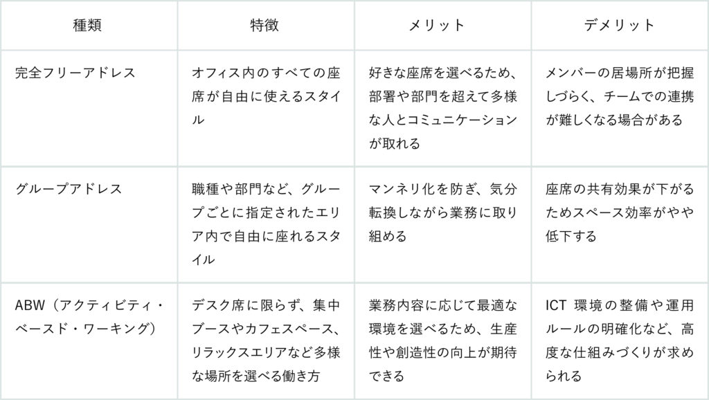 そこで本記事では、フリーアドレスの種類、導入のメリットや注意点についてわかりやすくご紹介します。