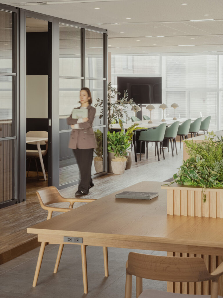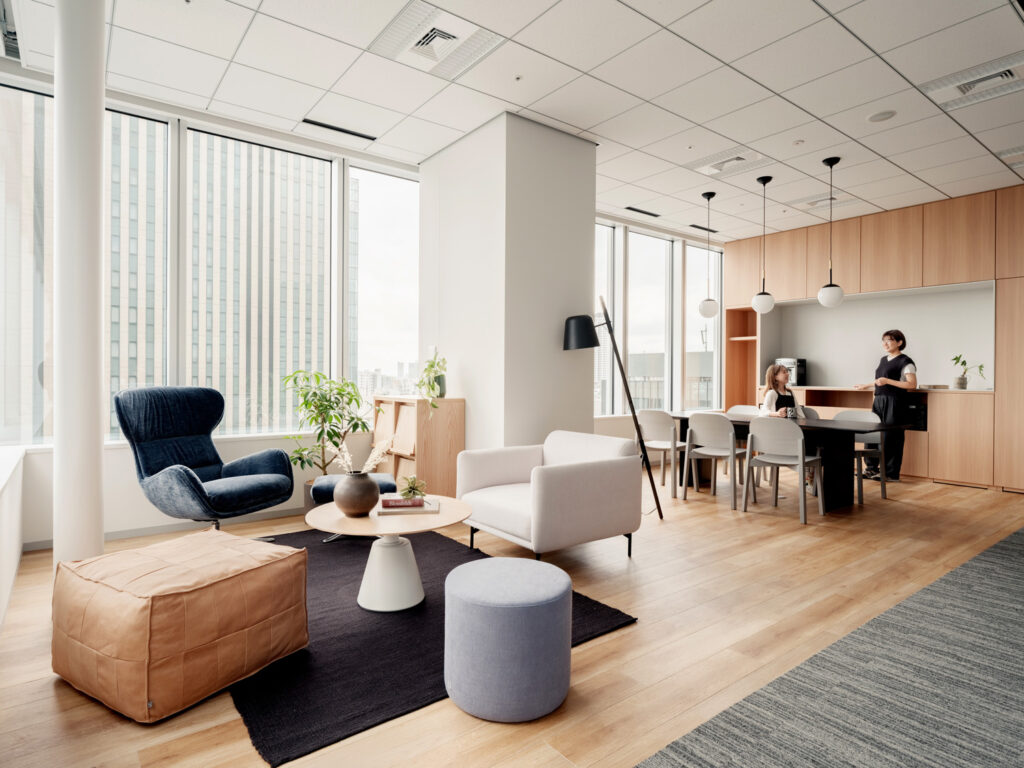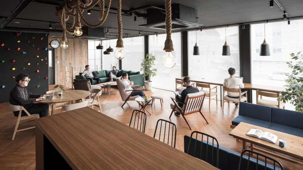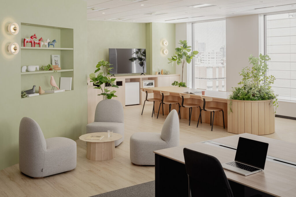 これにより、従業員が自然に会話を交わしたり、リラックスした時間を過ごせたりする空間に仕上がっているでしょう。