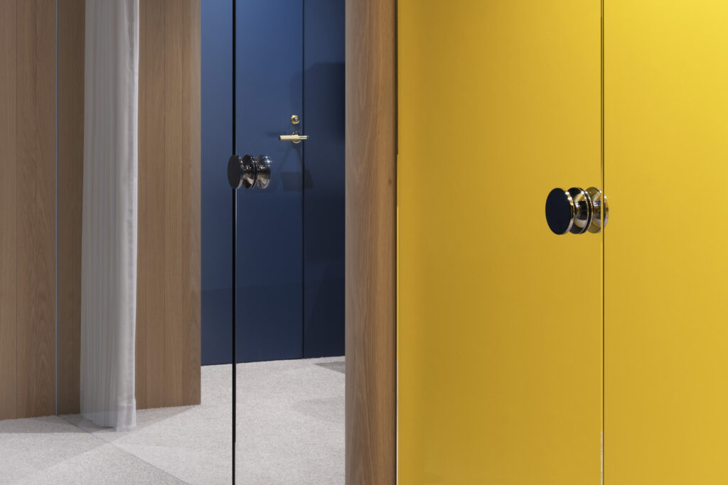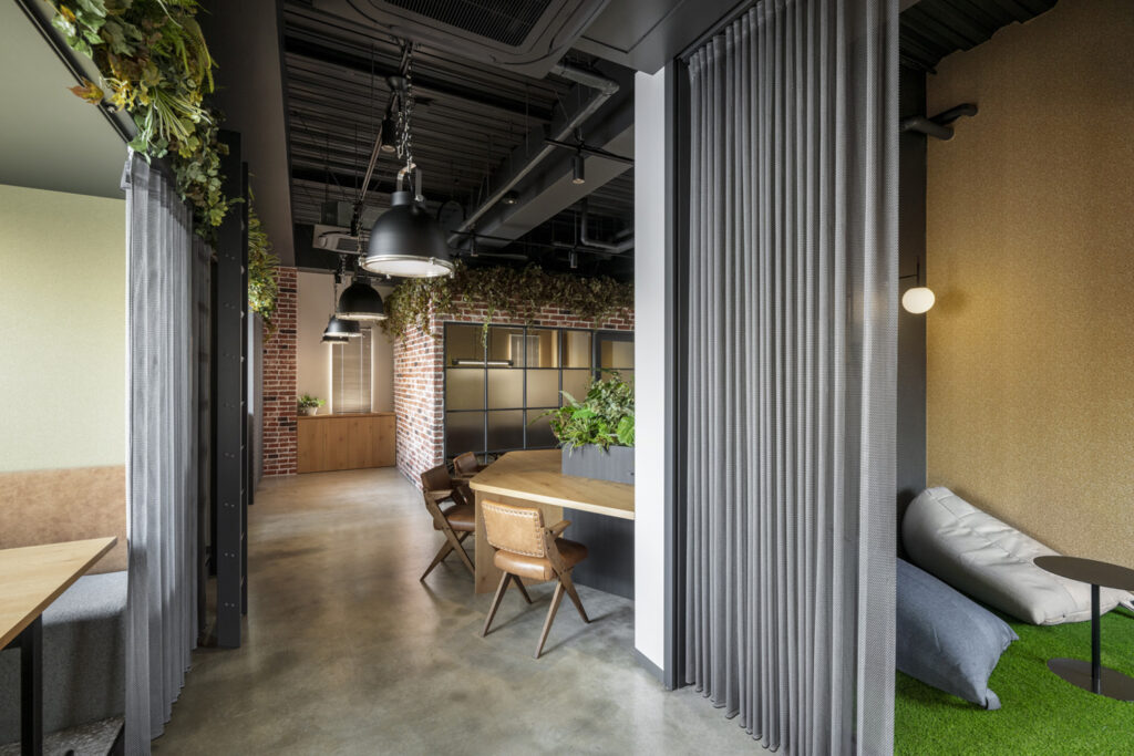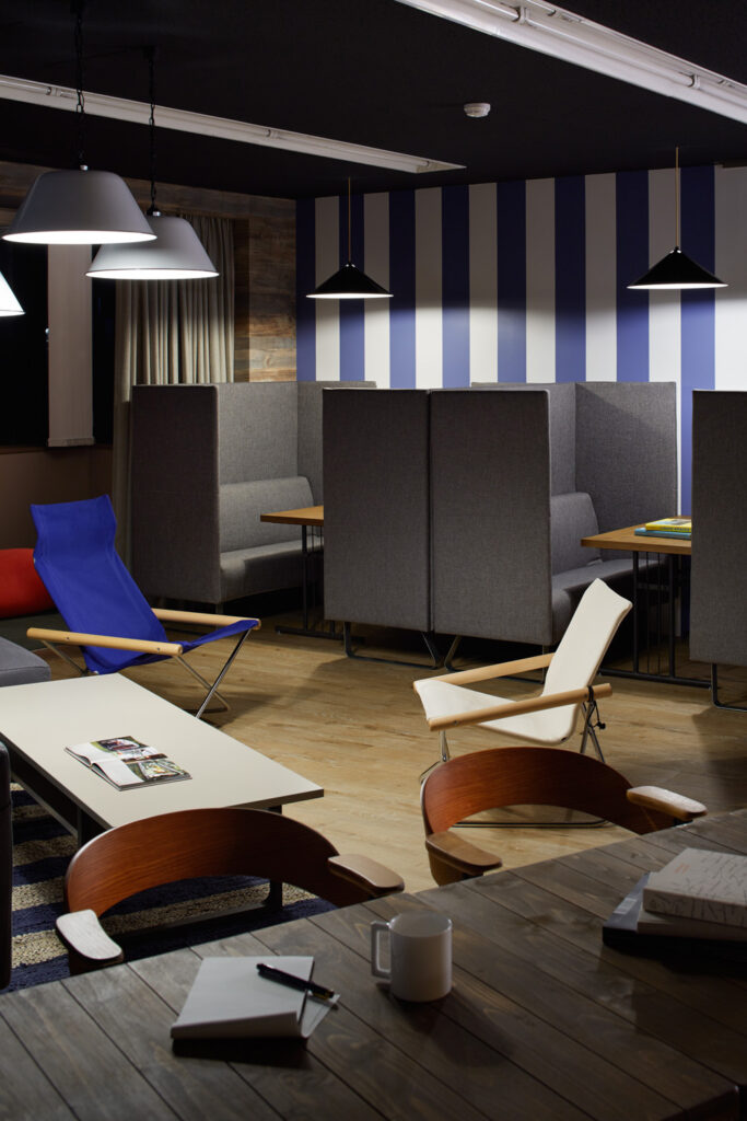 空間ごとにさまざまな壁紙を選び、心身のリズムを整えながらメリハリをつけて働けるオフィスデザインです。