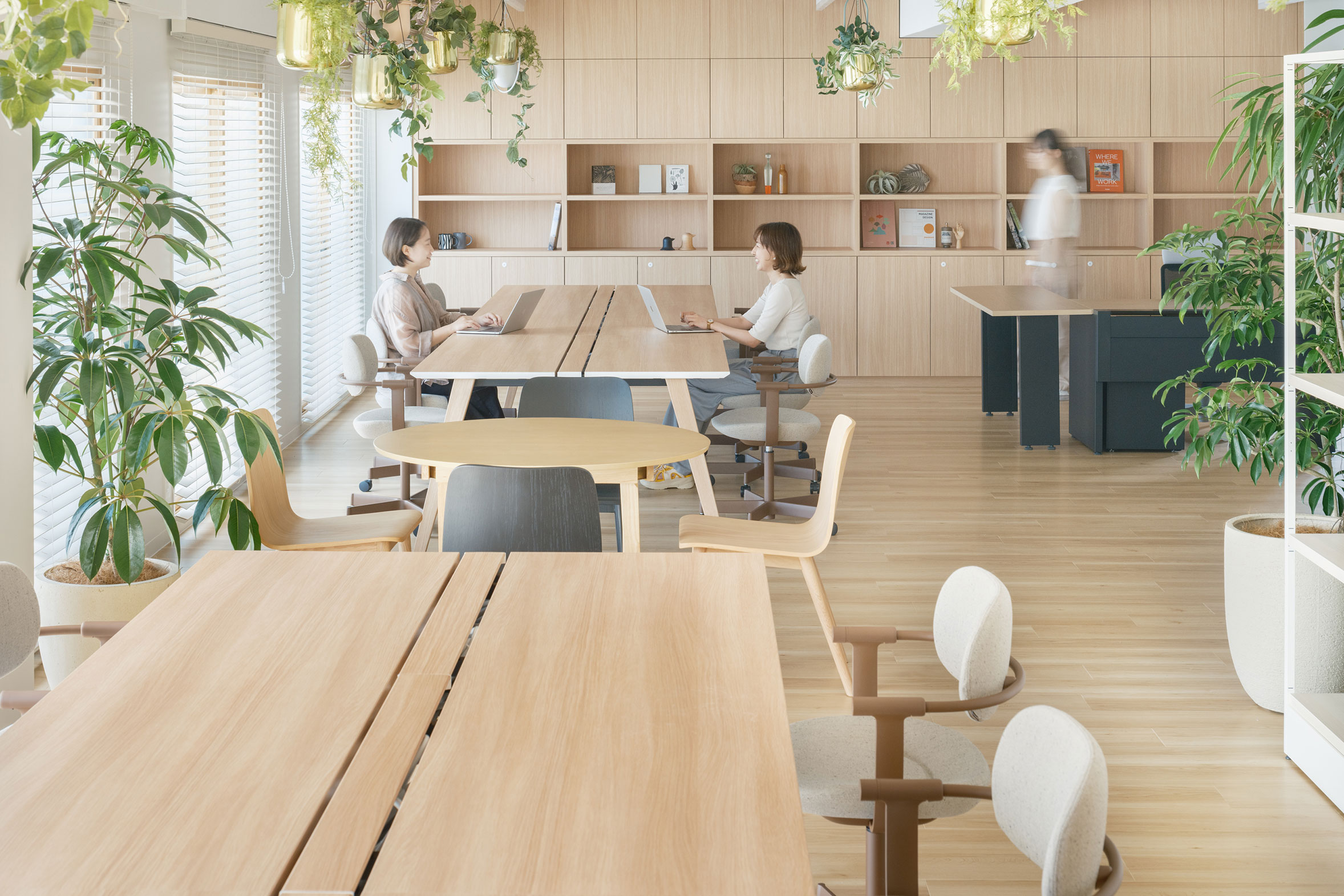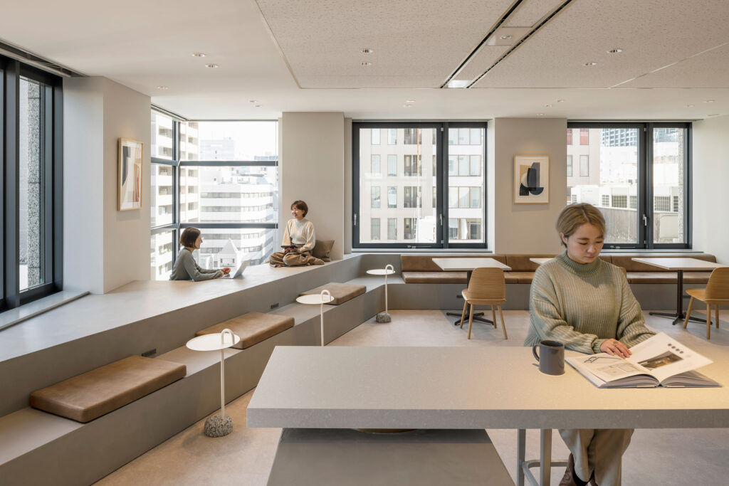 フリーアドレスのメリットは、スペース効率だけではありません。部署を超えたコミュニケーションが生まれやすく、さまざまな場所で作業することで気分転換にもなります。