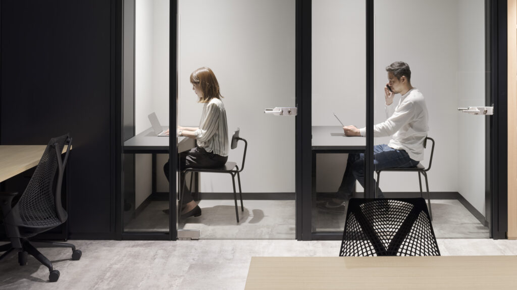 防音ブースや電話ボックス型の集中スペース、個別のワークポッドなどを設置することで、従業員が業務の性質に応じて場所を使い分けられる環境がつくれます。