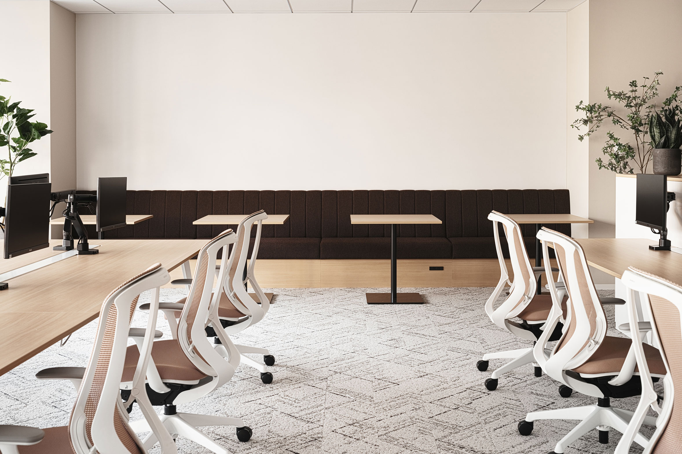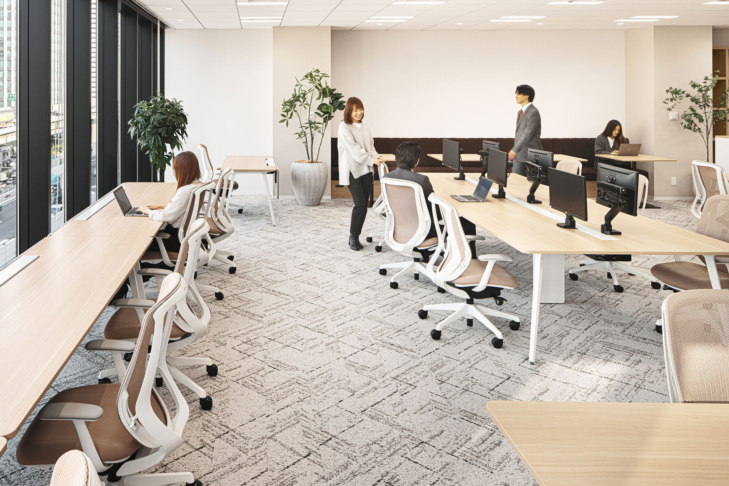 働く日常の何気ないシーンの使いやすさを重視しながら、オンとオフのメリハリがつくオフィスデザインが完成しました。