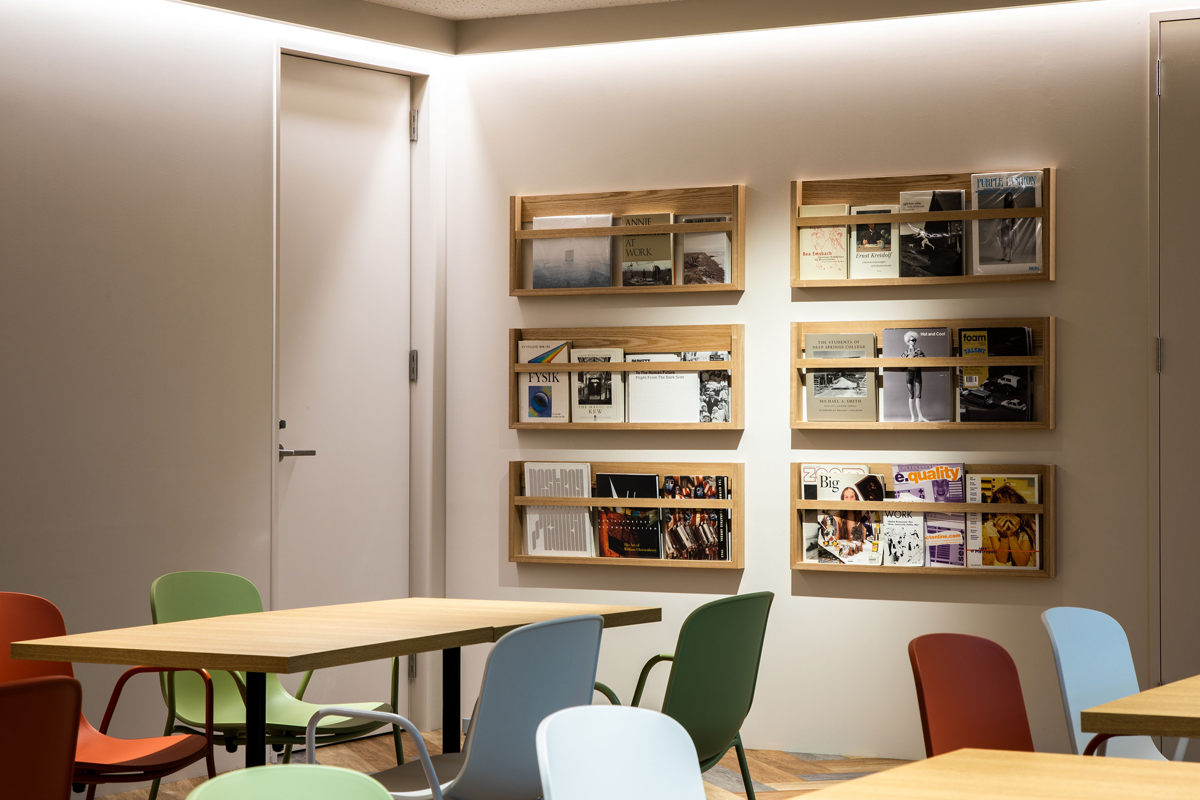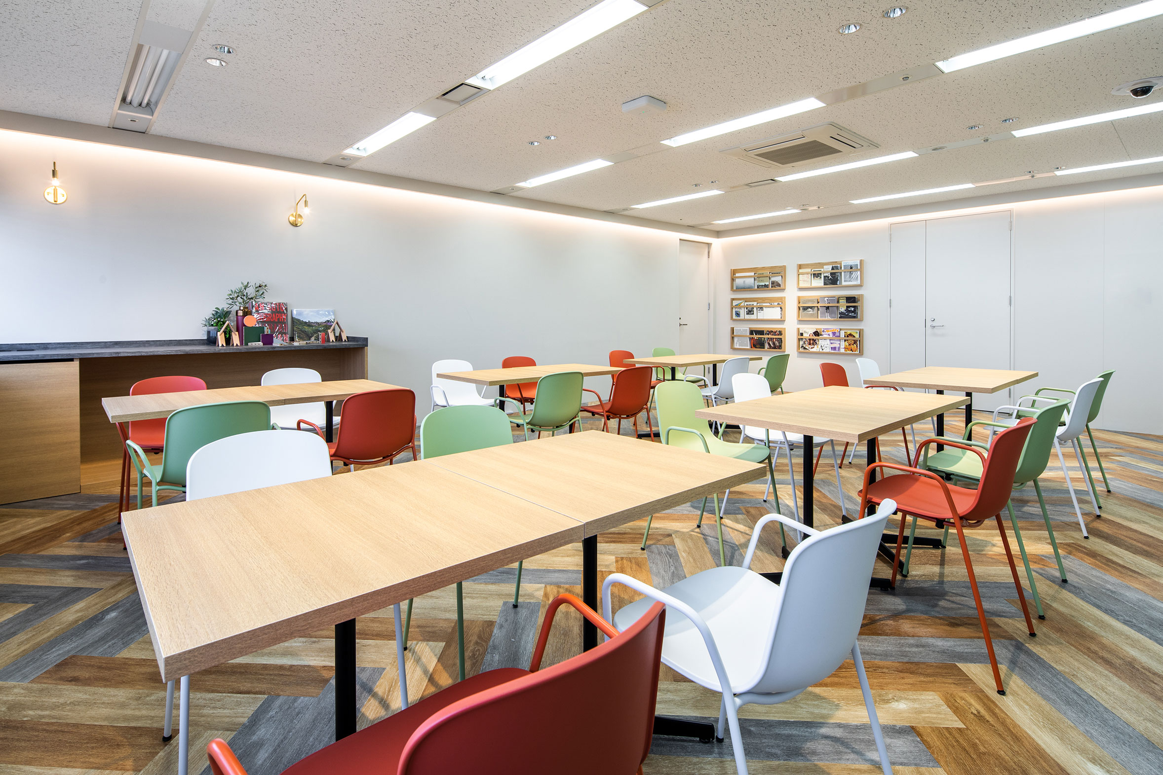 内装素材とインテリアスタイリングを組み合わせ、更に色や形による遊び心もプラスされたオフィスデザインです。