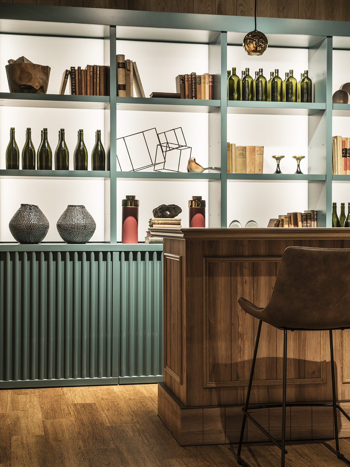 エントランスは緑と木目それぞれの濃淡を変え、落ち着いたトーンで揃えつつ並べ方や太さなど施工にも意匠を施すことによってダイナミックな空間になっています。フリースペースは会社説明会やセミナーなどシーンに応じた使い方が可能。昼間と夜では雰囲気が変わるのもひとつの魅力となり、眺めの良さを活かしたオフィス環境が働く社員のモチベーションを高めます。会議室や応接室は造作テーブルを製作し、空間それぞれに合わせた海外製の家具を組み合わせ質の高いオフィスデザインとなっています。